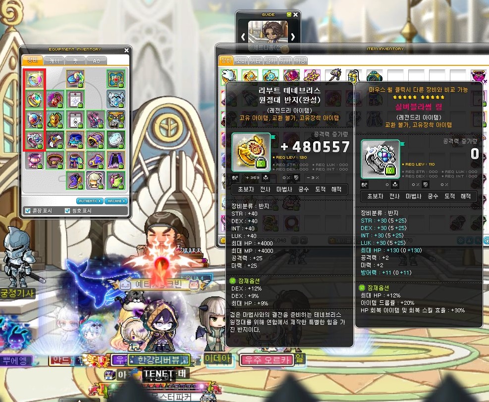 - 모든 반지 아이템은 장착시 교환불가(장교불)이다.