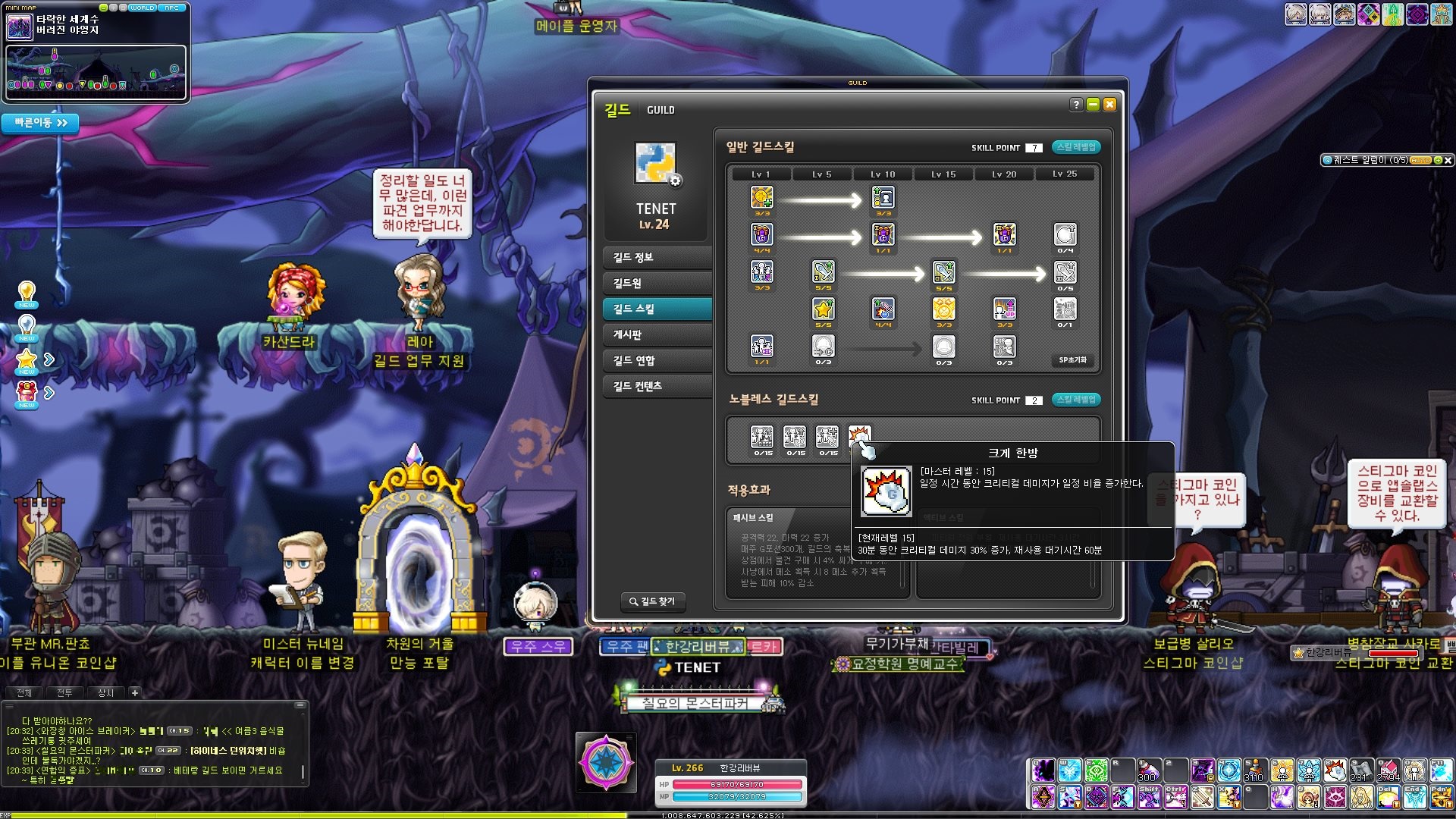 · 길드 전용 노블레스 스킬 · 매주 월요일 자정 스킬 포인트 초기화 · 유지하기 위해서 플래그 레이스, 샤레니안의 지하수로 참여하여 주간 랭킹에 따른 획득 스킬 포인트 상이 |